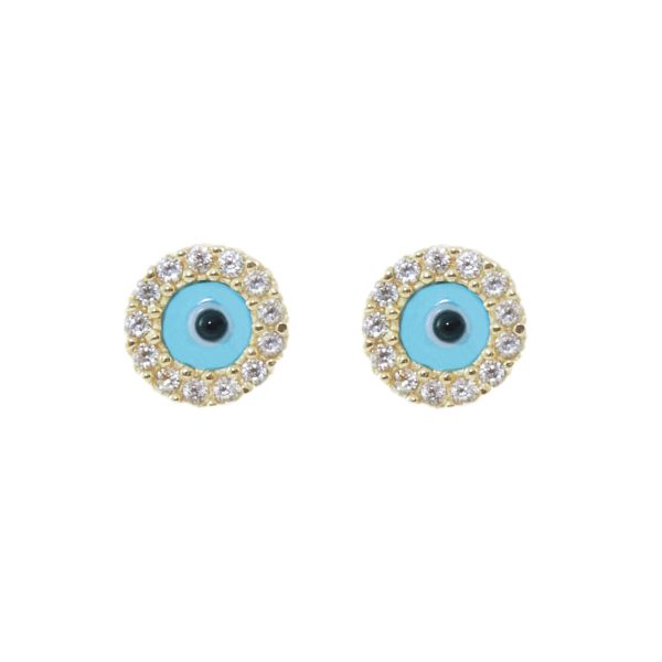 Gold, Cubic Zirconia & Enamel Evil Eye Earrings