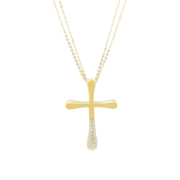 Discover timeless elegance with our gold and cubic zirconia cross and chain jewelry. Crafted in 14K gold, this versatile piece features a stunning cross adorned with sparkling cubic zirconia gemstones. Available in rose gold or white gold or yellow gold, it offers a perfect choice to match your style. The delicate chain complements the intricate cross, creating a sophisticated accessory suitable for everyday wear or special occasions. Elevate your jewelry collection with this exquisite piece that combines classic design with modern charm, making it an ideal gift or personal statement of faith and style. With the distinction of John Lyras certification.