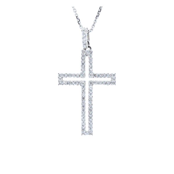 Discover the timeless elegance of this gold & diamond cross and chain necklace crafted from 18K white gold. Featuring a beautifully detailed cross pendant adorned with shimmering round-cut diamonds, it exudes sophistication and grace. The durable chain complements the pendant perfectly, making it an ideal accessory for everyday wear or special occasions. Crafted with high-quality materials, this jewelry piece combines luxurious white gold and sparkling diamonds to create a stunning statement. Elevate your jewelry collection with this exquisite cross and chain, a symbol of faith and style that enhances any outfit. With the distinction of John Lyras certification.