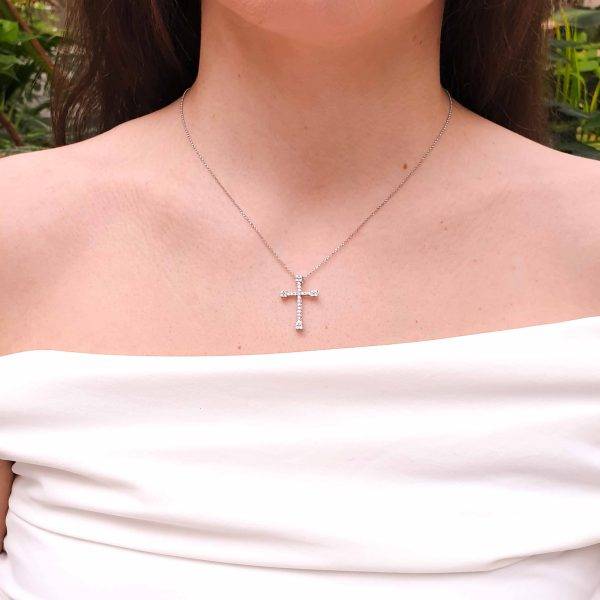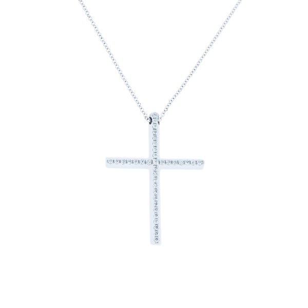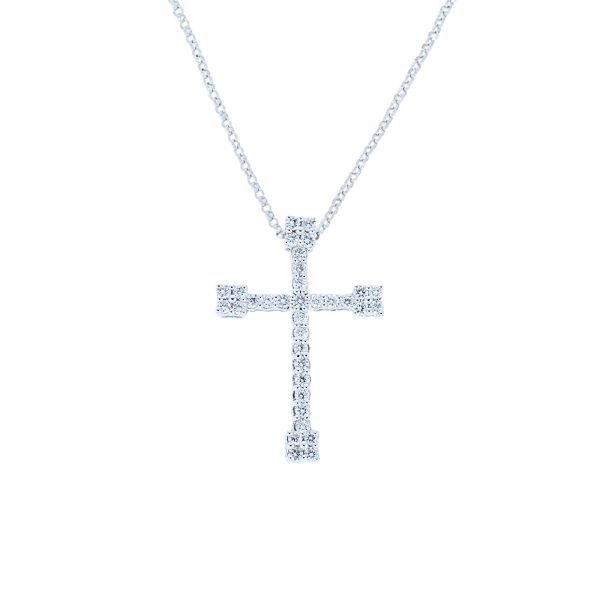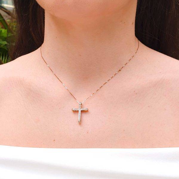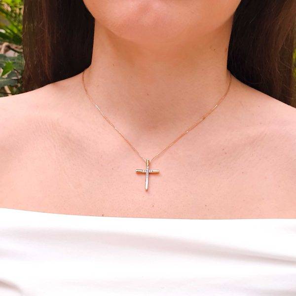 Discover the timeless elegance of our gold & diamond cross and chain jewelry, crafted in 18K gold. Available in rose gold or white gold or yellow gold, this exquisite piece features a beautifully detailed cross accented with shimmering round brilliant cut diamonds. Perfect for elevating any outfit, it combines sophisticated craftsmanship with luxurious sparkle. Whether for everyday wear or special occasions, this versatile necklace offers a stunning expression of faith and style. Enhance your jewelry collection with this elegant cross and chain, designed to make a meaningful statement. With the distinction of John Lyras certification.