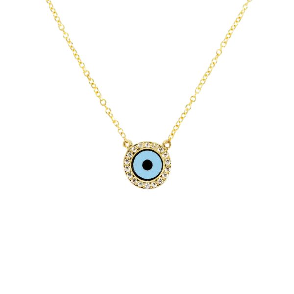 Discover the captivating allure of our gold and diamond evil eye necklace, a perfect blend of elegance and protection. Crafted in 18K gold, available in rose gold or white gold or yellow gold, this necklace features stunning blue and white diamonds that symbolize good luck and ward off negativity. Its intricate evil eye design adds a meaningful touch to your jewelry collection, making it ideal for everyday wear or special occasions. Elevate your style with this luxurious piece that combines craftsmanship, symbolism, and timeless beauty. With the distinction of John Lyras certification.