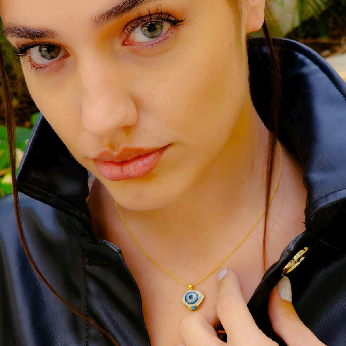 Discover the allure of the gold & diamond evil eye necklace crafted in 18K yellow gold for a timeless and luxurious appeal. Featuring vibrant blue diamonds expertly cut into dazzling round shapes, this pendant embodies protection and style. The intricate design symbolizes warding off negative energies while adding a sophisticated touch to any ensemble. Perfect for everyday wear or special occasions, this necklace combines elegance and meaningful symbolism. Elevate your jewelry collection with this stunning piece that seamlessly blends craftsmanship, vibrant gemstones, and a captivating evil eye motif. With the distinction of John Lyras certification.
