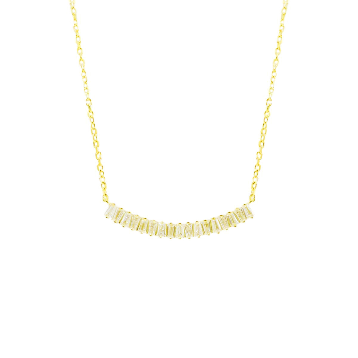 Discover timeless elegance with this silver and cubic zirconia necklace, crafted from 925 sterling silver plated in radiant yellow gold. The necklace features sparkling cubic zirconia gemstones, expertly cut to enhance their brilliance and fire. Designed to add a touch of sophistication to any outfit, it offers a perfect balance of luxury and affordability. Ideal for special occasions or everyday wear, this jewelry piece effortlessly elevates your style. Crafted with attention to detail and high-quality materials, it promises durability and enduring beauty for your jewelry collection. With the distinction of John Lyras certification.
