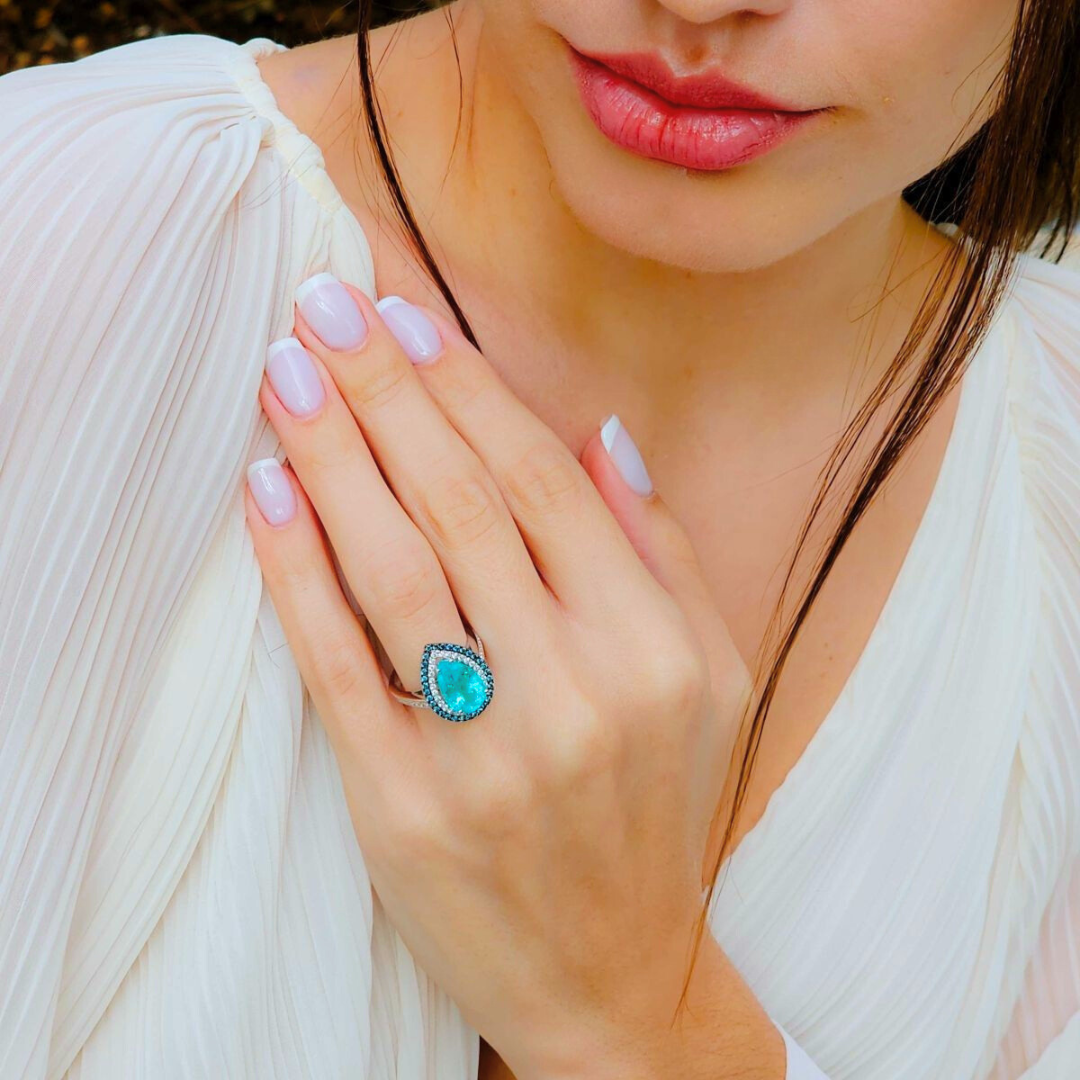 | Συνολικό Βάρος Πετρών | 3.97ct Paraiba τουρμαλίνη, 0.25ct round brilliant κοπής διαμάντια, 0.34ct round brilliant κοπής μπλε διαμάντια |